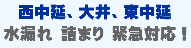 西中延、大井、東中延での水の困った即解決!急な水道トラブルに緊急でかけつけ訪問し、蛇口の水漏れ、トイレ詰まり、排水の溢れ、タンクの故障など修理いたします。