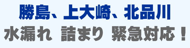 勝島、上大崎、北品川での水の困った即解決!急な水道トラブルに緊急でかけつけ訪問し、蛇口の水漏れ、トイレ詰まり、排水の溢れ、タンクの故障など修理いたします。